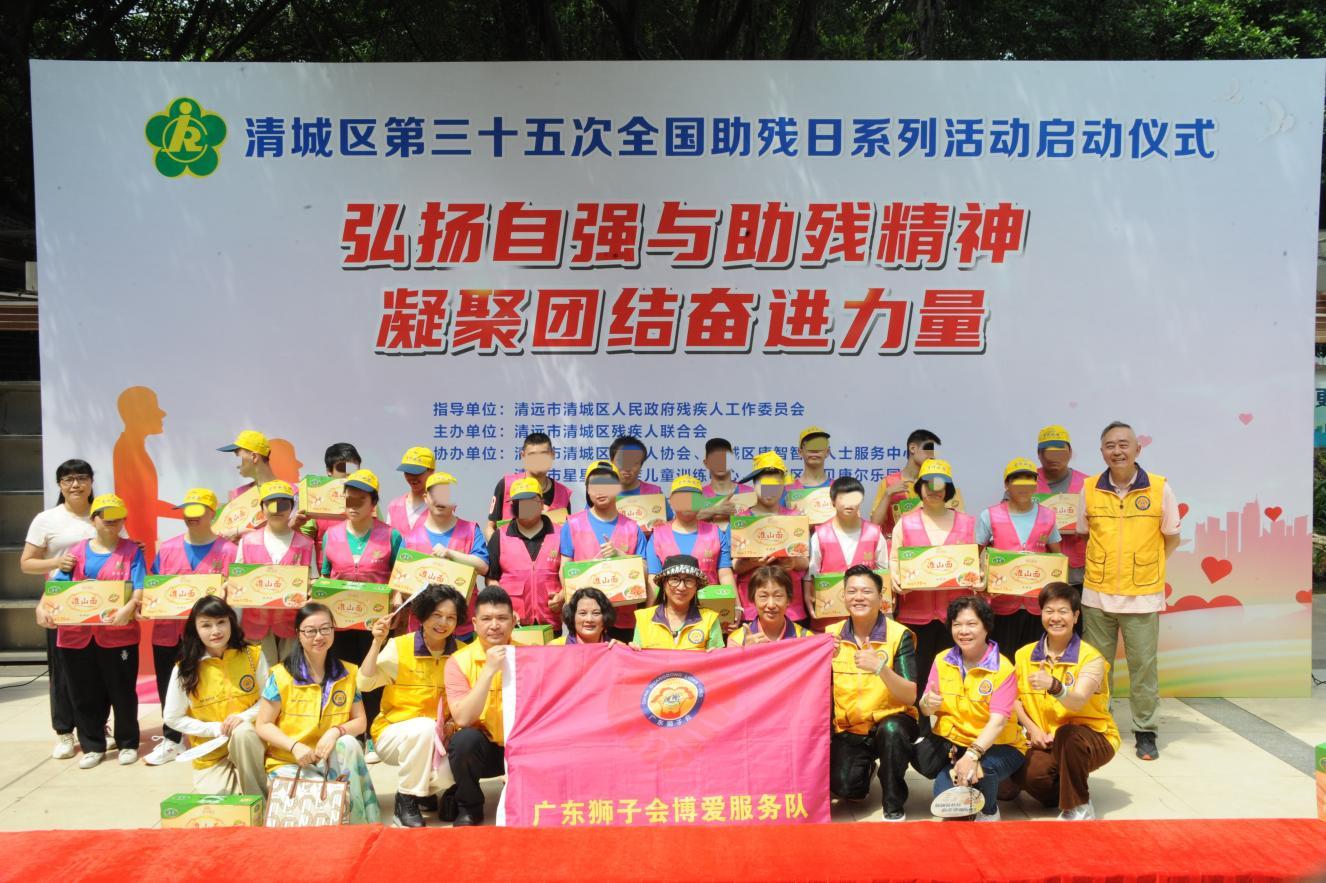 2025年5月14日上午,由清远市清城区残疾人联合会主办的“弘扬自强与助残精神·凝聚团结奋进力量”清城区第三十五次全国助残日系列活动启动仪式在清远市清城区中山公园举行。此次活动吸引了辖区内50余名肢体、智力残疾人及其家长参加,旨在通过就业创业成果展示和文艺表演等形式,展现清远市肢体残疾人和智力残疾人的良好精神风貌,为第三十五次全国助残日的到来营造浓厚氛围。广东狮子会博爱服务队作为协办方之一,为到场的50位残疾人士送上慰问品,共同为残疾人事业贡献力量,让这个特殊的日子充满更多温暖与感动。